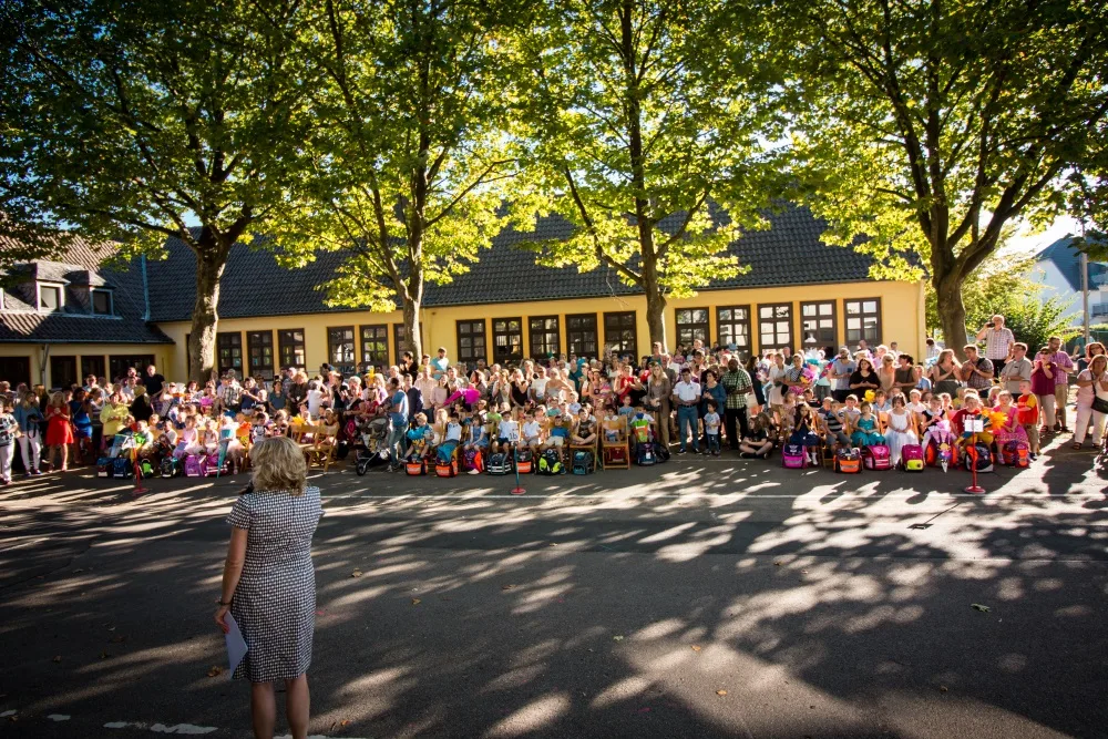 Besser hätte das Wetter wahrlich nicht sein können, mit dem die 70 neuen Erstklässler an der KGS Niederkassel begrüßt wurden. Zuerst saßen die Neuankömmlinge noch etwas unsicher auf den Holzstühlen, als sie von Schulleiterin Gabriele Sperling begrüßt wurden. Das bunte Rahmenprogramm, an dem sich viele der 228 übrigen Schülerinnen und Schüler der KGS Niederkassel beteiligten, zauberte jedoch schnell ein Lächeln auf die Gesichter der I-Dötzchen. Flöten, Trompeten, Akkordeons, die Theater-AG und der Schulchor zeigten eindrucksvoll, wie breit gefächert das musisch-kreative Angebot an der KGS ist. Auch Schulsprecherin Hanna begrüßte die Gäste gemeinsam mit einigen Klassensprechern und führte sie dabei in die wichtigsten Begebenheiten der Schule ein.