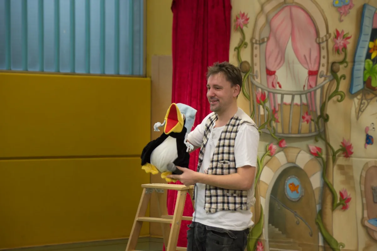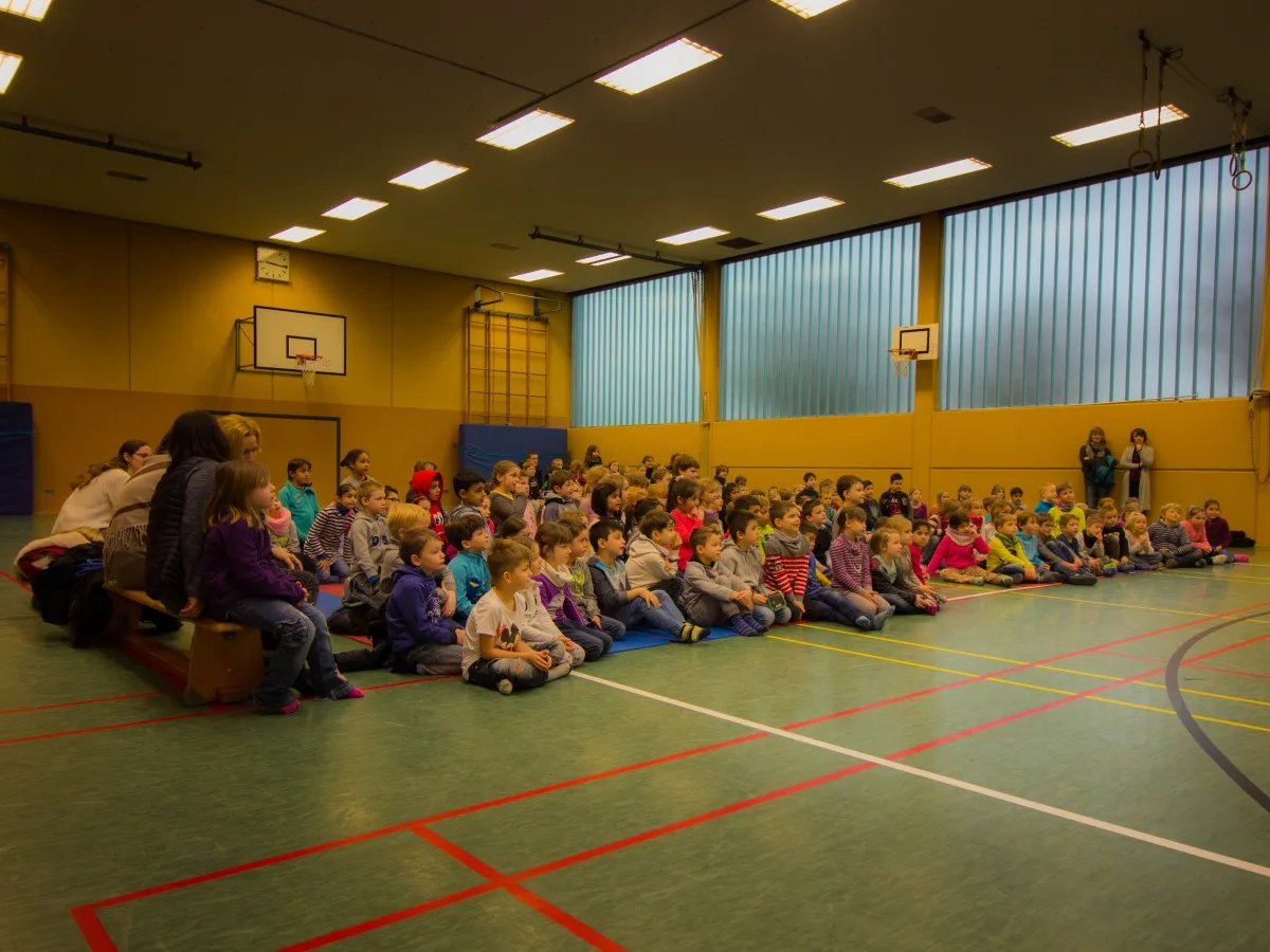 Das Team der Opernkiste um Stefan Mosemann führte den Barbier von Sevilla in einer kindgerechten Version für die Jahrgangsstufen 1/2 und 3/4 auf. Bei beiden Aufführungen wirkten, wie auch in den Vorjahren, Kinder und Lehrer der KGS Niederkassel mit. Die Kinder schlüpften hierzu spontan in die Rolle der betrunkenen Soldaten, die den Grafen Almaviva zu Rosina begleiteten. Auf Seiten der Lehrer hatten Hr. Emrich und Fr. Thiesen die Ehre als Notar für die Vermählung von Almaviva und Rosina zu sorgen. Das Publikum lauschte wie gebannt den vom Team der Opernkiste ausgewählten Arien, die zwar mit Musik vom Band, aber dafür live und ohne Mikrofonverstärkung vorgetragen wurden.