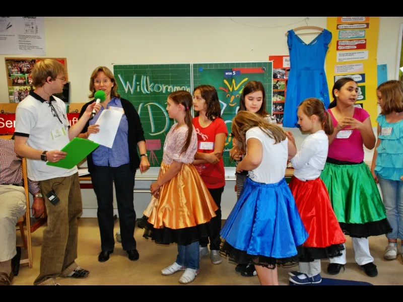 Aber worüber sollten wir in dieser Stunde berichten? Da das Jahr 2011 ganz unter dem 60jährigen Jubiläum unseres schönen gelben Schulgebäudes stand und wir durch den Denkmalpfleger der Stadt Niederkassel, Herrn Schnabel, viel über die damalige Zeit und das Leben der Schulkinder vor 60 Jahren erfahren hatten, entschloss sich die Klasse 4a, über die 50er Jahre zu forschen und hierüber in Lilipuz zu berichten. Die Klasse 4b entschied sich dafür, die Klicker-Nachrichten vorzubereiten und bei Lilipuz zu verlesen und die Klasse 4c erkundete bei zwei gemeinsamen Ausflügen den WDR sowie am Tag selbst den Übertragungswagen.