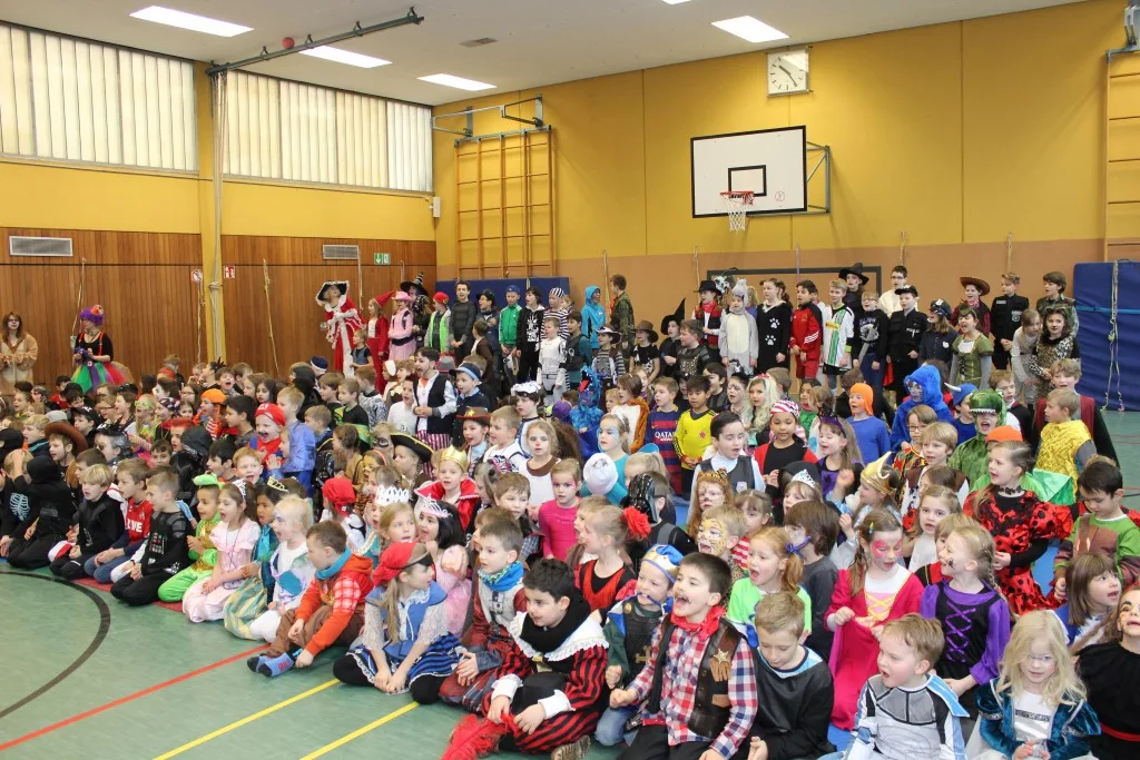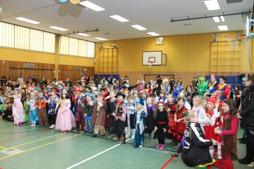 Am 04.02.2016 war es endlich wieder so weit: die fünfte Jahreszeit hatte die KGS fest im Griff. Der Schultag an der KGS Niederkassel stand an diesem Tag ganz im Zeichen des Wieverfastelovends. Schon vor Unterrichtsbeginn konnte man Jedi-Ritter, Prinzessinnen und Wölfe über den Schulhof der KGS laufen sehen. Mit dem ersten Klingelzeichen verschwanden dann alle Jecken in den Klassen, um dort gemeinsam und ausgiebig zu feiern. Gegen 9.45 Uhr zogen dann alle Kinder und Lehrer in die Turnhalle ein. Dort warteten bereits die Tanzgruppen des Verschönerungsvereins aus Uckendorf, um auch in diesem Jahr ihr toll einstudierten Tänze zu präsentieren. Kinderprinzessin Freya begrüßte gemeinsam mit Adjutant Moritz alle Anwesenden. Anschließend durften dann die Lehrer zeigen, wie gut sie das Tanzbein schwingen können. Die Klasse 2c von Frau Quiske sorgte bei den Kindern mit ihren Sketchen für zahlreiche Lacher und viel Applaus. Die Zuschauer bedankten sich mit einer zweifachen Rakete.