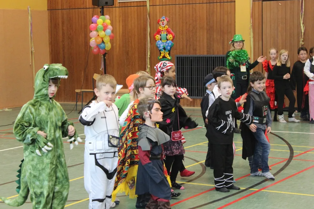 Ihren festen Stammplatz hat die Tanzgarde von Grün-Gelb Niederkassel, die auch in diesem Jahr mit ihren zahlreichen Tanzgruppen vertreten war. Den Abschluss der von Frau Sperling geleiteten Karnevalsfeier bildete die Klassen 1c, die die Kinder zu einen karnevalistischen Mitmachtanz animierten. Abschließend verabschiedeten die Lehrerinnen und Lehrer ihre Schüler in die tollen Tage.