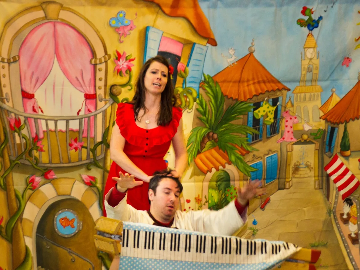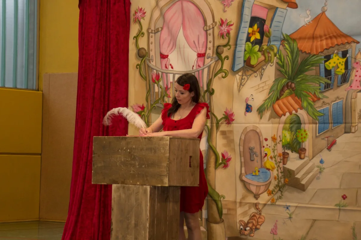 Das Team der Opernkiste um Stefan Mosemann führte den Barbier von Sevilla in einer kindgerechten Version für die Jahrgangsstufen 1/2 und 3/4 auf. Bei beiden Aufführungen wirkten, wie auch in den Vorjahren, Kinder und Lehrer der KGS Niederkassel mit. Die Kinder schlüpften hierzu spontan in die Rolle der betrunkenen Soldaten, die den Grafen Almaviva zu Rosina begleiteten. Auf Seiten der Lehrer hatten Hr. Emrich und Fr. Thiesen die Ehre als Notar für die Vermählung von Almaviva und Rosina zu sorgen. Das Publikum lauschte wie gebannt den vom Team der Opernkiste ausgewählten Arien, die zwar mit Musik vom Band, aber dafür live und ohne Mikrofonverstärkung vorgetragen wurden.