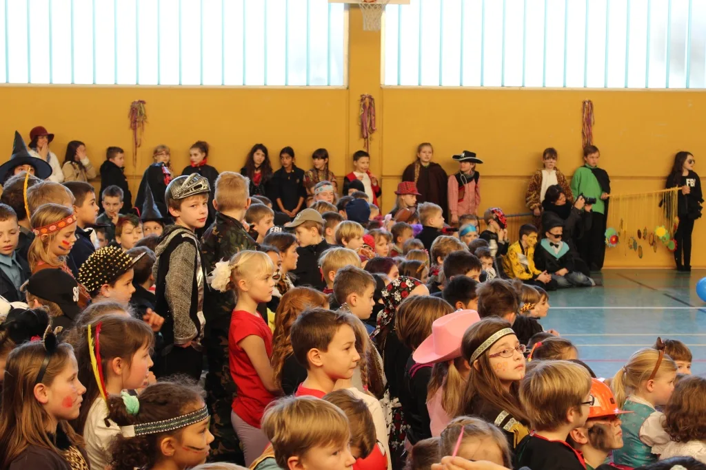 Am 27.02.2014 stand der Schultag an der KGS Niederkassel ganz im Zeichen des Wieverfastelovends. Nachdem die Klassen gemeinsam in den Klassen ausgiebig gefeiert und ihre Kostüme präsentiert hatten, zogen Sie gegen 9.45 Uhr in die Turnhalle ein. Dort warteten bereits die Tanzgruppen des Verschönerungsvereins aus Uckendorf, um ihre aktuellen Tänze zu zeigen. Anschließend durften dann die Lehrer zeigen, wie gut sie das Tanzbein schwingen können.